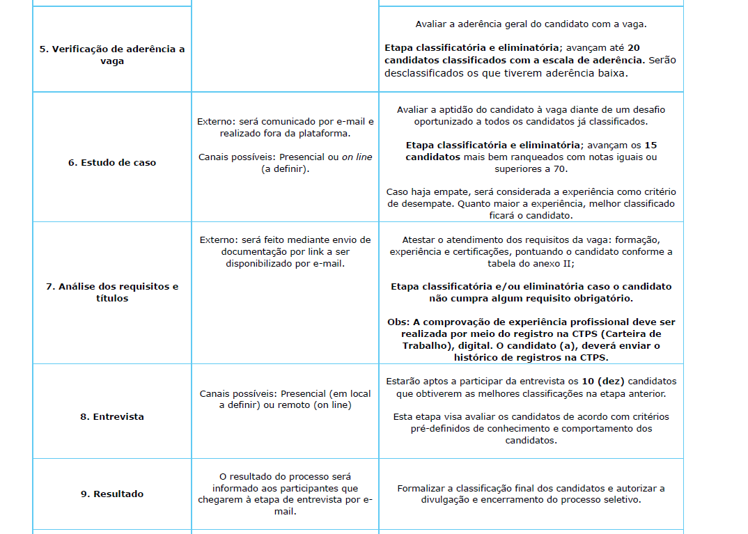 - Etapa 8: Fase: Análise de Requisitos para a vaga