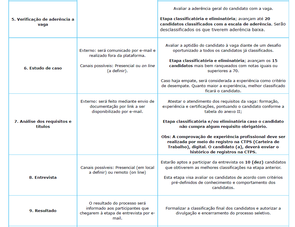 - Etapa 8: Fase: Análise de Requisitos para a vaga